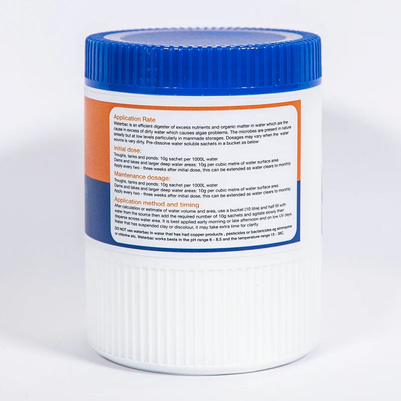 Waterbac is sensitive to pH and temperature. It works best between pH 6 – 8.5 and temperature 12 - 38°C. Outside these limits, Waterbac will take longer to work. The presence of pesticides/chlorine/copper sulphate will also significantly affect the product and may result in poor results.