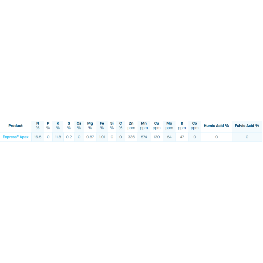 EcoGrowth Express APEX is a high-performance liquid fertiliser designed to deliver a balanced combination of Nitrogen (N), Phosphorus (P), Potassium (K) and essential trace elements for total plant health and productivity. Ideal for all crop types, APEX supports vigorous growth, improved flowering, strong root systems, and superior fruit and foliage quality.