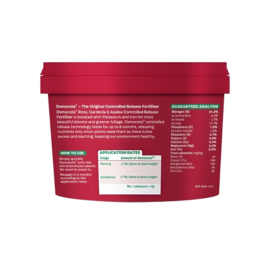 Achieve beautiful, vibrant blooms and lush foliage with Osmocote Azaleas, Camellias & Roses, a premium slow-release fertiliser designed specifically for these popular ornamental plants. Packed with the essential nutrients your plants need, this formula promotes strong root development, abundant flowers, and long-lasting beauty in your garden or containers.